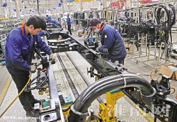4月12日,陕汽淮南专用汽车有限公司总装车间工人在组装车辆。一季度,该公司累计实现各类底盘产销3367辆,同比增长42.91%;实现主营业务收入8.856亿元,同比增长50.62%,利润总额920.5万元。作为华东地区唯一战略性窗口,该公司立足“做精专用车”战略目标,认真践行“把淮南打造成中国新能源商用车创新之都,链合产业集聚,成为中国汽车工业活力之源”的发展部署,助推淮南转型发展,着力将公司打造成陕汽控股集团明星子公司、华东地区乃至全国最大的专用汽车生产基地。