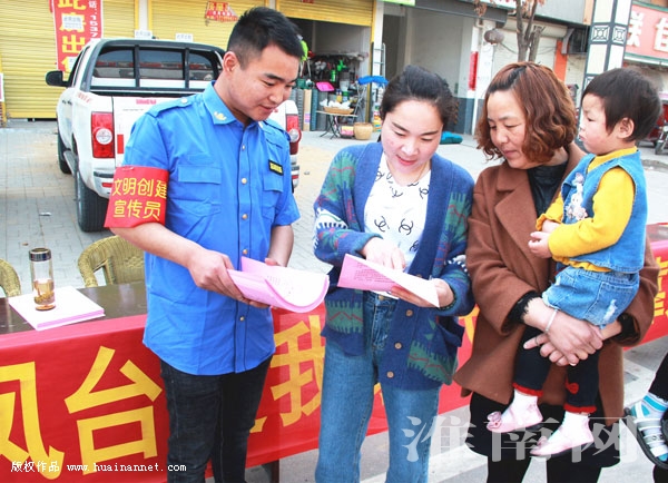 凤台县朱马店镇组织机关干部职工走上街头,通过散发宣传资料、现场宣讲等形式,宣传创建全国文明城市的意义,动员全民参与,形成人人参与、共建共享的良好社会氛围。