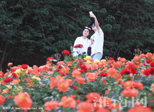 近日,淮南市舜耕山环山路月季园的各色月季花竞相绽放,吸引游客前来欣赏。(李莹 摄)