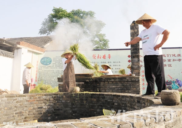 5月中旬,在香草种植传承人郑以禄家中,工人们在对香草进行加工。