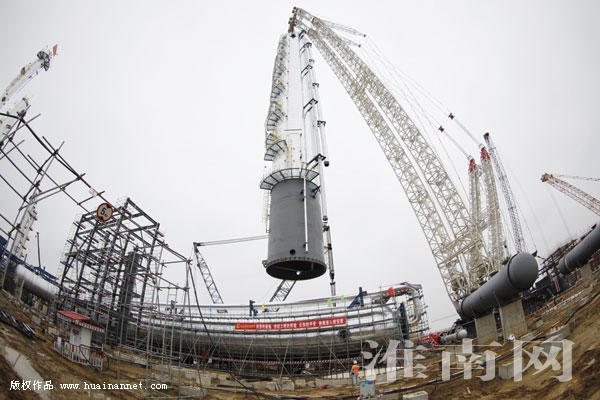 5月21日,中安联合煤化甲醇制烯烃装置2号丙烯塔一次吊装就位。2号丙烯塔是甲醇制烯烃装置的核心设备,塔体长77米,塔直径6.6米,总重近850吨。丙烯塔整体吊装就位,为丙烯塔交付模块化安装奠定了基础。