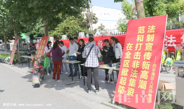 5月23日上午,田家庵区开展打击非法集资的专项宣传活动,现场向市民发放宣传册页1000份,劝诫广大居民增强理性投资意识,自觉抵制高利诱惑,远离非法集资。