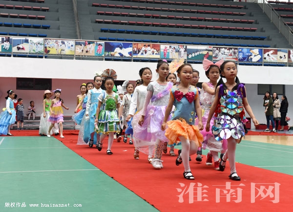 5月22日,淮师附小山南校区学生在第四届科技艺术节“欢乐嘉年华T台秀”活动中展示利用废旧物品制作的环保时装。该校今年科技艺术节围绕“科技放飞梦想 艺术点亮童心”主题,让学生当主角,10余项系列主题活动精彩纷呈。