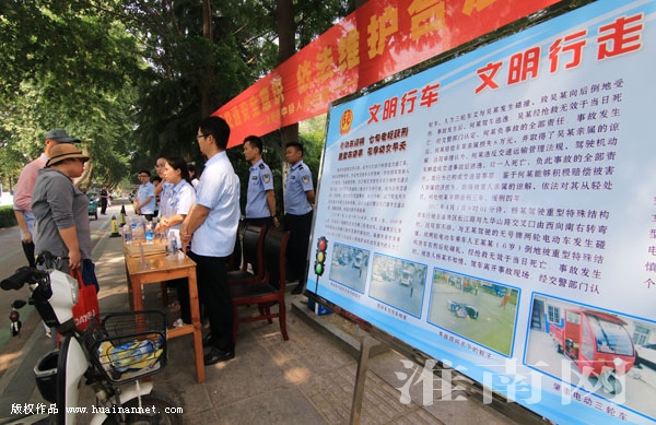 6月8日,市中级人民法院的法官们在洞山中路设立宣传栏,向过往行人宣讲文明行车、文明行走等法律法规,并通过图文展板例举出身边发生的鲜活案例,以提醒市民增强交通安全意识、依法维护合法权益。
