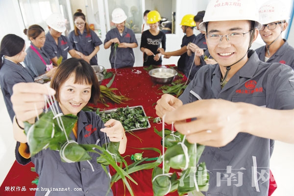 6月15日,商合杭高铁11标淮南制梁场工人开展包粽子比赛,体验端午节传统文化。商合杭高铁淮南制梁场在保障高铁施工制梁任务完成同时,把弘扬传承中华民族优秀传统文化与企业精神、人文关怀相结合,借助中国传统节日,让来自全国各地的高铁建设者在施工一线感受到企业“大家庭”的温暖。