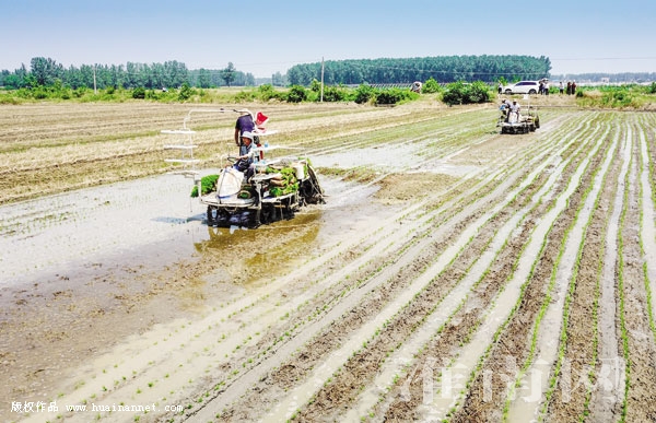 6月14日,在凤台县新集镇振君农机服务专业合作社工厂化育秧基地,工人驾驶插秧机为农户插秧。作为全国首批8个机插秧全覆盖试点县之一,凤台县充分发挥当地农业资源优势,着力扶持发展现代农业园区,推动农业产业化生产。据了解,该县60余万亩稻田90%实现了工厂机械化育插秧作业,秧苗集中培育,不仅省时省钱省力,还可以提高插秧质量,推动农业增效、农民增收。
