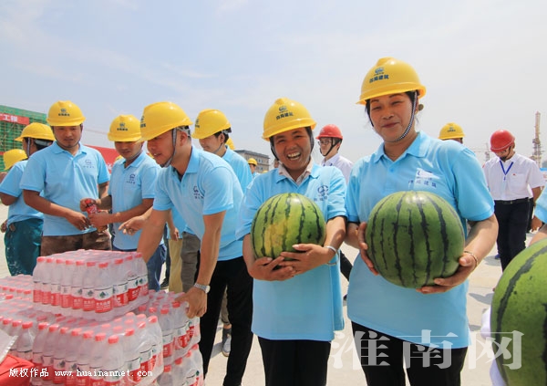 6月21日,淮南高新区党工委、管委会向中铁四局淮南山南小学项目经理部的数百名建设者,送去了西瓜、矿泉水、冰红茶及防暑降温药品。据了解,由中铁四局承建的山南小学项目包括十四小、十五小、十六小“三校”,目前工程进展顺利,计划暑假期间完成竣工验收。