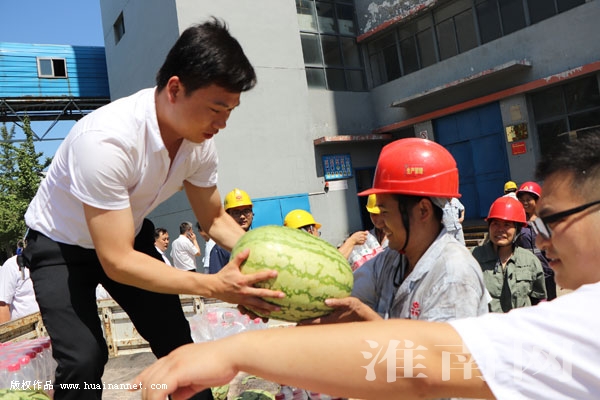 7月12日,中煤新集公司一矿为高温天气里坚守岗位的矿工们送去了西瓜、矿泉水等防暑降温用品以及组织的关怀。干群倍受鼓舞,大家纷纷表示,一定要把组织关爱化为克服困难的动力,立足岗位,勤奋工作,为矿井的安全生产贡献力量。