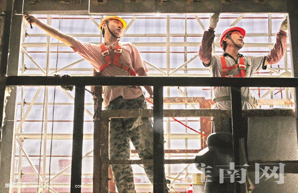 图六:建设者在高空作业。