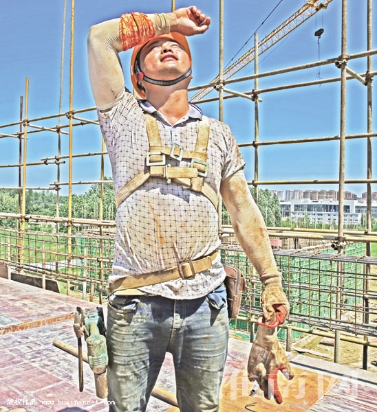 近日,我市已连续出现35℃以上的高温天气,骄阳似火,酷暑炎热,进入了“烧烤”模式。但是还有许多人必须不畏高温“烤”验,顶着烈日辛勤工作。他们是环卫工人、绿化工人、建筑工人、市政工人……越是高温之下这些劳动者越是繁忙、劳动强度越大。一个个“高温下的劳动者”,头顶烈日,穿着工装,纵然挥汗如雨,仍忍受着太阳的炙烤,保障着社会的有序运转,用汗水书写着平凡。
