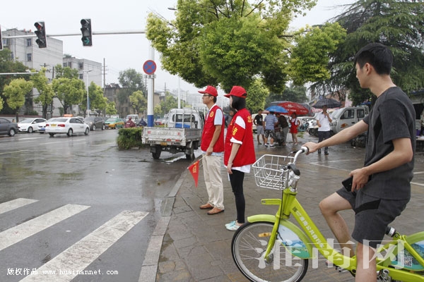 8月4日,田家庵区开展8月份“万名志愿者、共创文明城”集中行动, 来自全区各单位的志愿者围绕文明交通劝导、市容秩序维护等内容,冒雨开展志愿服务活动,推动志愿服务意识深入人心。(记者 李东华 通讯员 吴喆敏 编辑 汤宁)