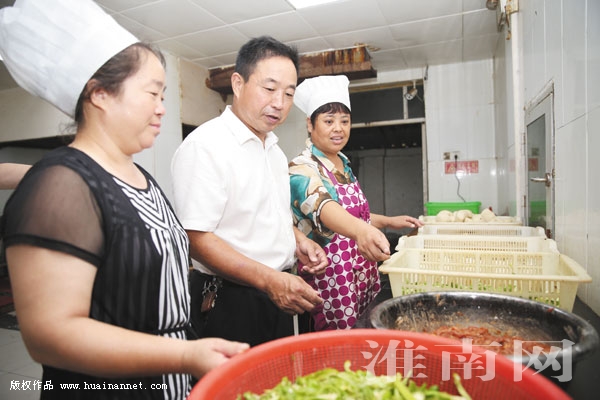 图四:杨新利在敬老院厨房里帮厨。