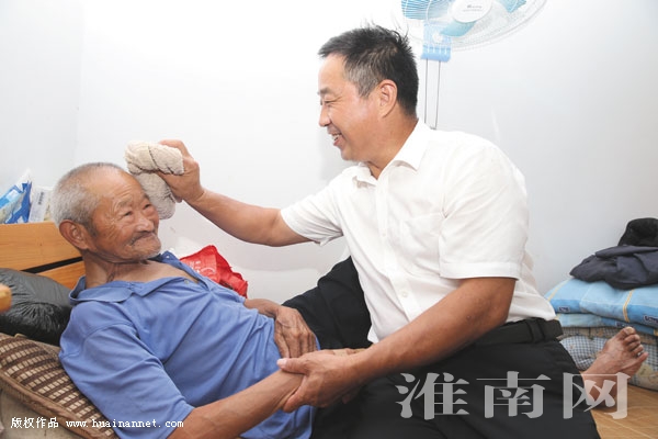 图一:杨新利看望生病孤寡老人。