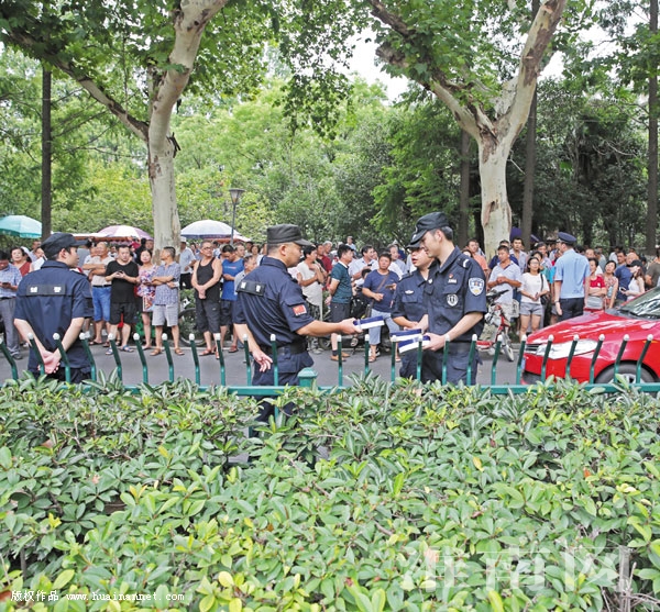 图三:警戒线拉开了大楼与人群的间隔