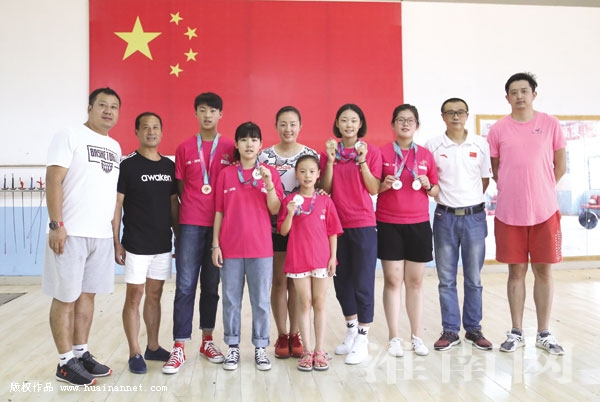 图:市击剑队部分夺牌队员返回淮南与教练组欢庆(记者 苏国义 实习生 张雅雯 编辑 汤宁)