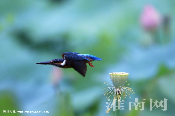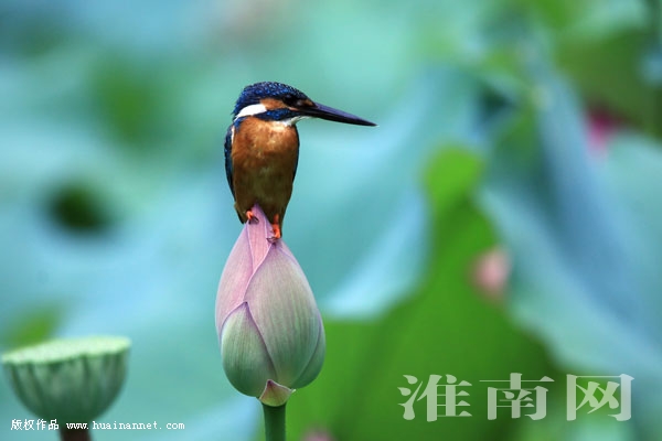 8月21日午间,一只翠鸟站在洞山中路文化广场水池的荷花枝头伺机捕鱼,美丽的画面颇具情趣。(记者 张越 编辑 汤宁)