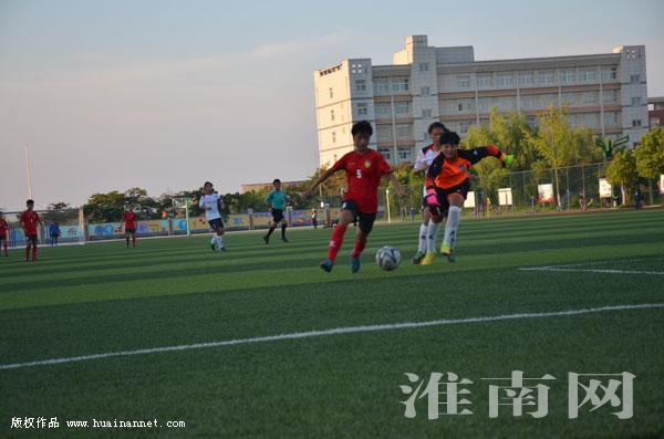 日前,安徽省第十四届运动会青少年部足球女子比赛在蚌埠市固镇县举行,淮南代表队发挥顽强拼搏的精神,积极拼抢,巧妙配合,在绿茵场上展现铿锵玫瑰风采。最终,淮南女子足球甲组、乙组双双获得第三名,为淮南代表团再添4枚金牌。图为比赛现场。(记者 陈崇韧 编辑 汤宁)