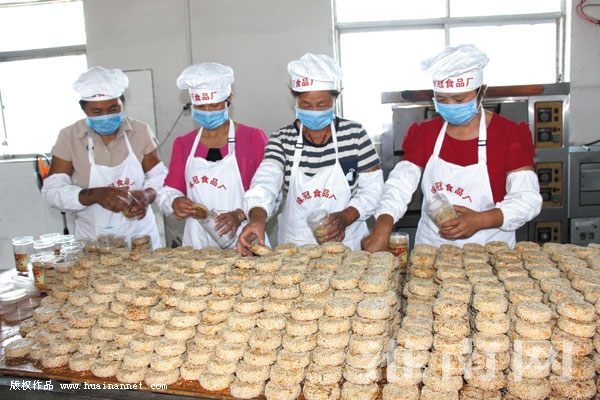 随着中秋节的临近,凤台县味冠食品有限公司组织员工加班加点生产大麻饼、大救驾、月饼等节日商品,确保市场供应。大麻饼、大救驾是凤台县地方特色名点,曾获评凤台县十大名小吃和地方特色小吃。图为工人在包装大麻饼。(通讯员 李娟 常开胜 编辑 汤宁)