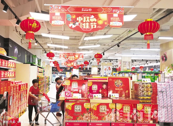 9月18日,记者走访我市各大商超发现,随着中秋节的临近,各式各样的月饼竞相摆入展柜,构成一道独特中秋风景。(记者 陈海涛 编辑 汤宁)
