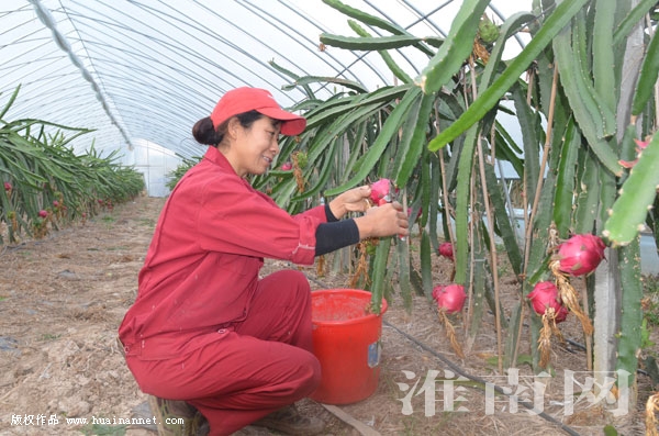 凤台经济开发区西魏社区居民魏修义退休后返乡创业,在家乡流转了12亩土地生态种植台湾红心火龙果,办起了火龙果观光采摘园,红彤彤的火龙果使她的生活变得日益红红火火。(通讯员 王晖 编辑 汤宁)