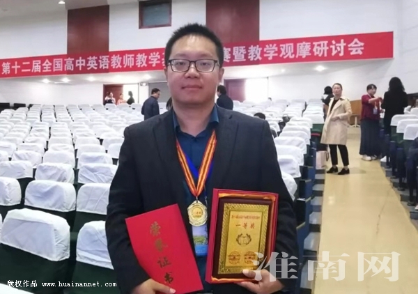 杨赟以先进的教学理念,新颖的教学设计,突出的课堂驾驭能力,赢得了专家评委的一致好评,最终荣获一等奖。赛前,安徽省教科院、淮南市教研室多次给予关心帮助,淮南市高中英语教研团队更是全程协助杨赟对教学设计、课件制作、课堂语言组织等各个教学环节进行反复打磨,力争精益求精,最终收获沉甸甸的奖牌。(记者)