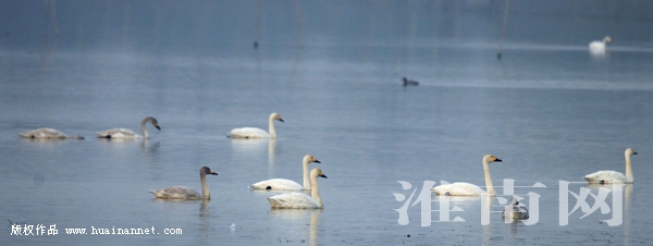 初冬时节,大批候鸟从遥远的北方迁徙至沿淮以南地区,或逗留补充能量,或寻找合适的越冬场所。11月24日,淮河早报、淮南网记者在我市大通区孔店乡的蔡城塘水域拍摄到国家一级保护动物东方白鹳及大天鹅、白琵鹭、鹤鹬等珍稀鸟类。如今,淮南的环境好了,市民爱鸟意识强了,这些“贵客”便纷纷进入我市,希望越来越多的市民加入爱鸟、护鸟行列,让鸟儿们自由翱翔。(记者 张越 编辑 汤宁)