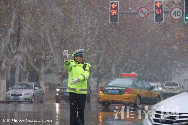 12月11日,一场中雪伴着风雨洒落我市,市公安局交警支队启动雨雪冰冻天气应急预案,除安排少量人员值守机关窗口,全警上路疏导指挥交通,确保恶劣天气里的道路交通安全畅通有序。 (记者 陈崇韧 通讯员 郭晨 编辑 汤宁)