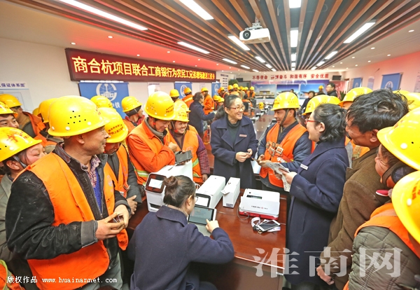 12月12日上午,工行淮南市分行舜耕支行业务人员在商合杭铁路站房四标项目部为农民工现场激活工资卡。当日,该行在项目部设立“流动银行”,为正在淮南南站现场施工作业的300余名农民工兄弟开通绿色通道,第一时间帮助他们激活工资卡。据悉,该项目部与协作队伍负责人签订不拖欠农民工工资承诺书,承诺按月支付农民工工资,保证农民工工资足额不拖欠。(记者 倪军 通讯员 尤恩奎 编辑 汤宁)