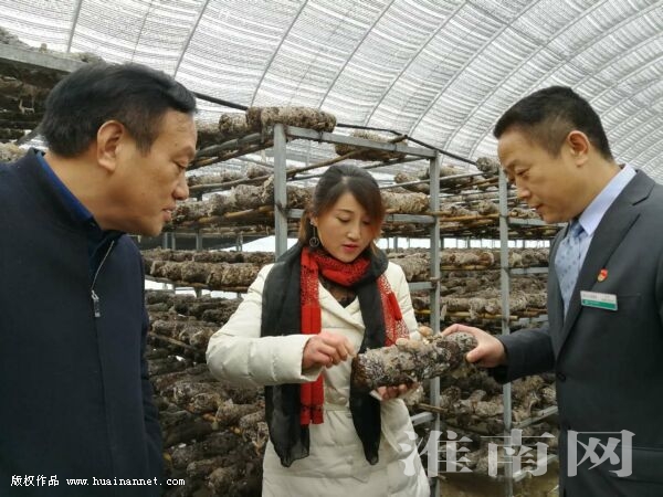 12月12日,凤台县尚塘镇香菇种植户安浩梅(中)正在向前来企业调研的镇人大和开展贷前调查的农行尚塘分理处负责人介绍冬季香菇种植管理技术。该镇人大注重解决当地小微企业生产发展中的制约“瓶颈”,通过与当地农行系统联系发放1000余万元的“助耕贷”等政策资金扶持,上门帮助企业解决融资难问题,深受企业好评。(通讯员 刘长明 编辑 汤宁)