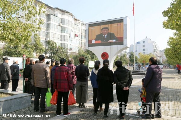 图一、上海工程局商合杭铁路站房四标项目部组织党员和农民工共同收看大会。图二、大通区大通街道部分群众,聚集在社区广场大屏幕前观看大会直播。图三、中煤新集二矿矿工在井口收看习总书记讲话。图四、大唐淮南洛河发电厂青年员工利用工余时间收看大会盛况。图五、大通区孔店乡柿园村农民王祥宝在草莓大棚用手机收看大会直播。(记者 倪 军 陈海涛 通讯员 宗 晖 姚晓山 赵军磊 编辑 汤宁)