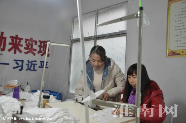 近日,凤台县朱马店镇利民村就业扶贫车间揭牌。该扶贫车间由市质监局扶贫工作队通过改造废旧老村部建立的扶贫产业项目,引进乐嵩公司到村投资办手套厂,已建成车间4个,投放机器60余台,带动周边80余人就业。图为技术人员在指导工人作业。(通讯员 童云山 记者 朱庆磊 编辑 汤宁)