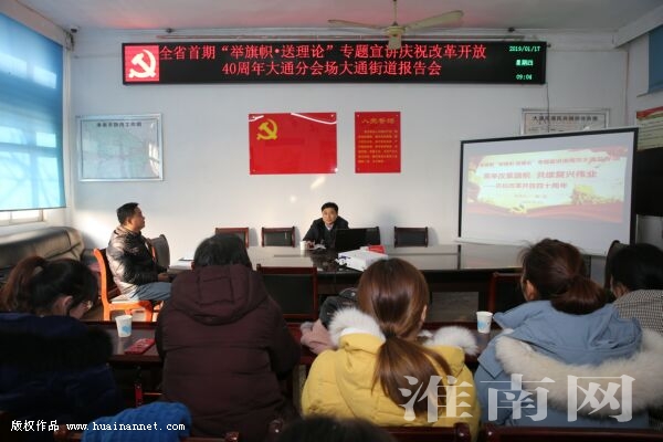 连日来,“举旗帜·送理论”专题宣讲团走进大通区,开展庆祝改革开放40周年宣讲活动。宣讲团成员深入基层一线,全面阐述改革开放的光辉历程、伟大成就,全面总结改革开放的宝贵经验,主题鲜明、内涵丰富,进一步增强了广大干群的自豪感和将改革开放进行到底的决心。图为宣讲团成员在大通街道进行宣讲。 (记者 朱庆磊 通讯员 王亮 编辑 汤宁)