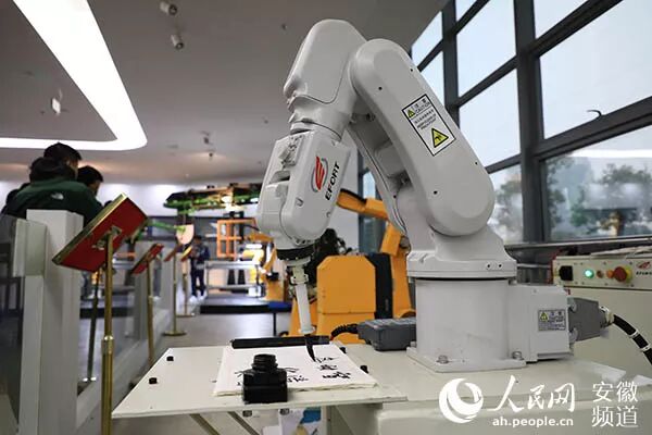安徽埃夫特智能机器人手臂灵活运转,用毛笔书写汉字(张俊摄)