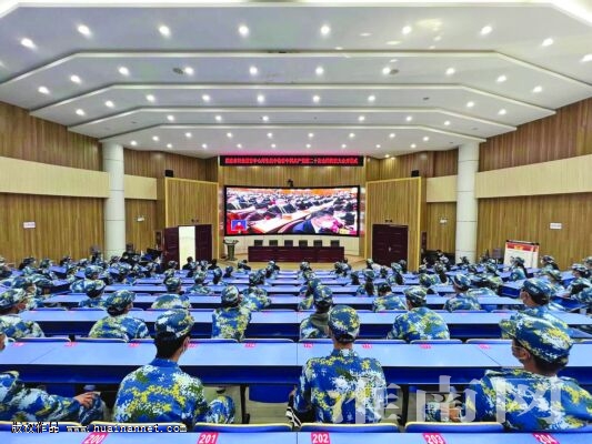 10月16日,中国共产党第二十次全国代表大会在北京人民大会堂隆重开幕,我市广大干群通过多种形式,收听收看党的二十大开幕会盛况。图为市职业教育中心师生集中收看党的二十大开幕会直播。(记者 陈 彬 摄)