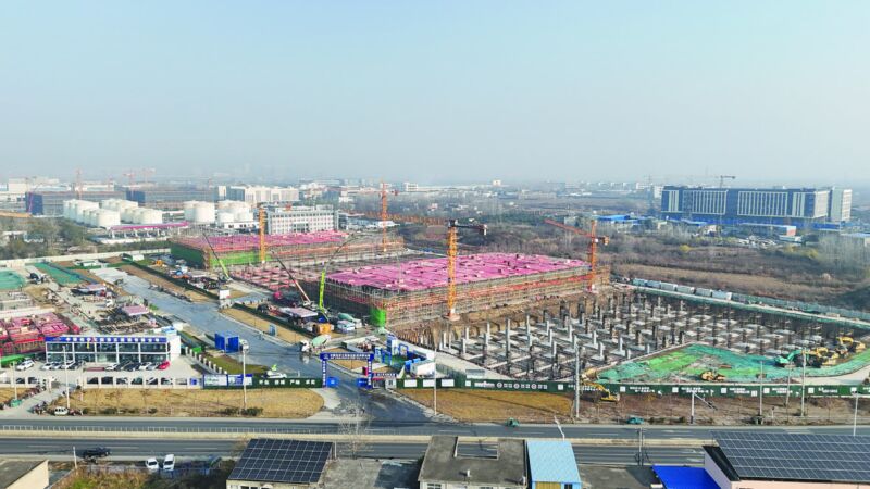 图为曹庵镇乡村振兴生态智慧产业园项目建设现场鸟瞰。 (记者 张明星 摄)