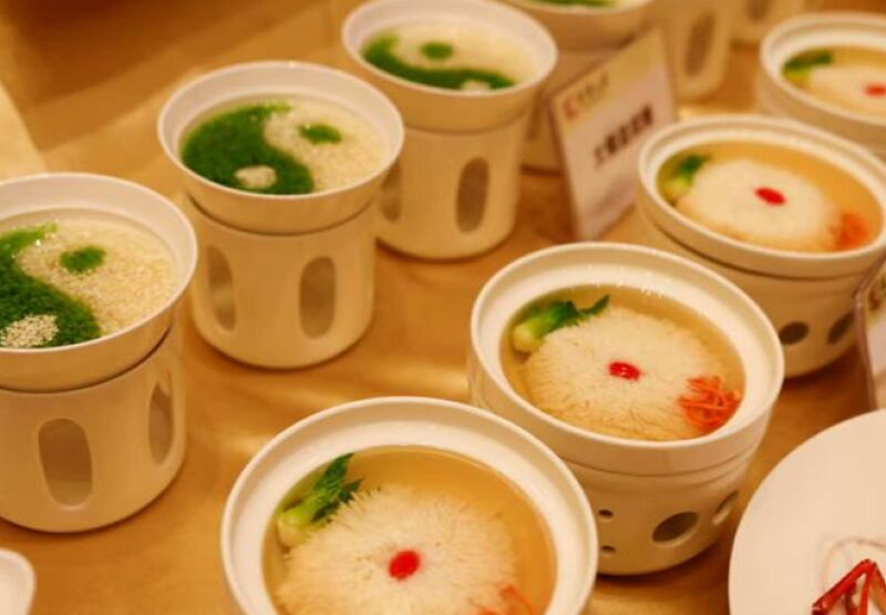 从古代宫廷佳肴到如今百姓餐桌上的美味,淮南豆腐宴历经千年演变,已形成400多道特色菜品。其中,“清汤白玉饺”入选安徽省十大旅游名小吃,“鸡汤菊花盅”“凤尾琵琶豆腐虾”等菜品更是凭借精巧造型与独特口感,成为展现淮南饮食文化的代表,让“人间至味是清欢”的意境在舌尖落地。