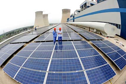 作为总装机容量达到258万千瓦的“皖电东送”大型骨干火电厂,田集发电厂却细算环保小账,利用主厂房屋顶安装250瓦多晶体硅光伏组件1400块,预计平均年发电32.97万千瓦时,可满足厂区道路照明。